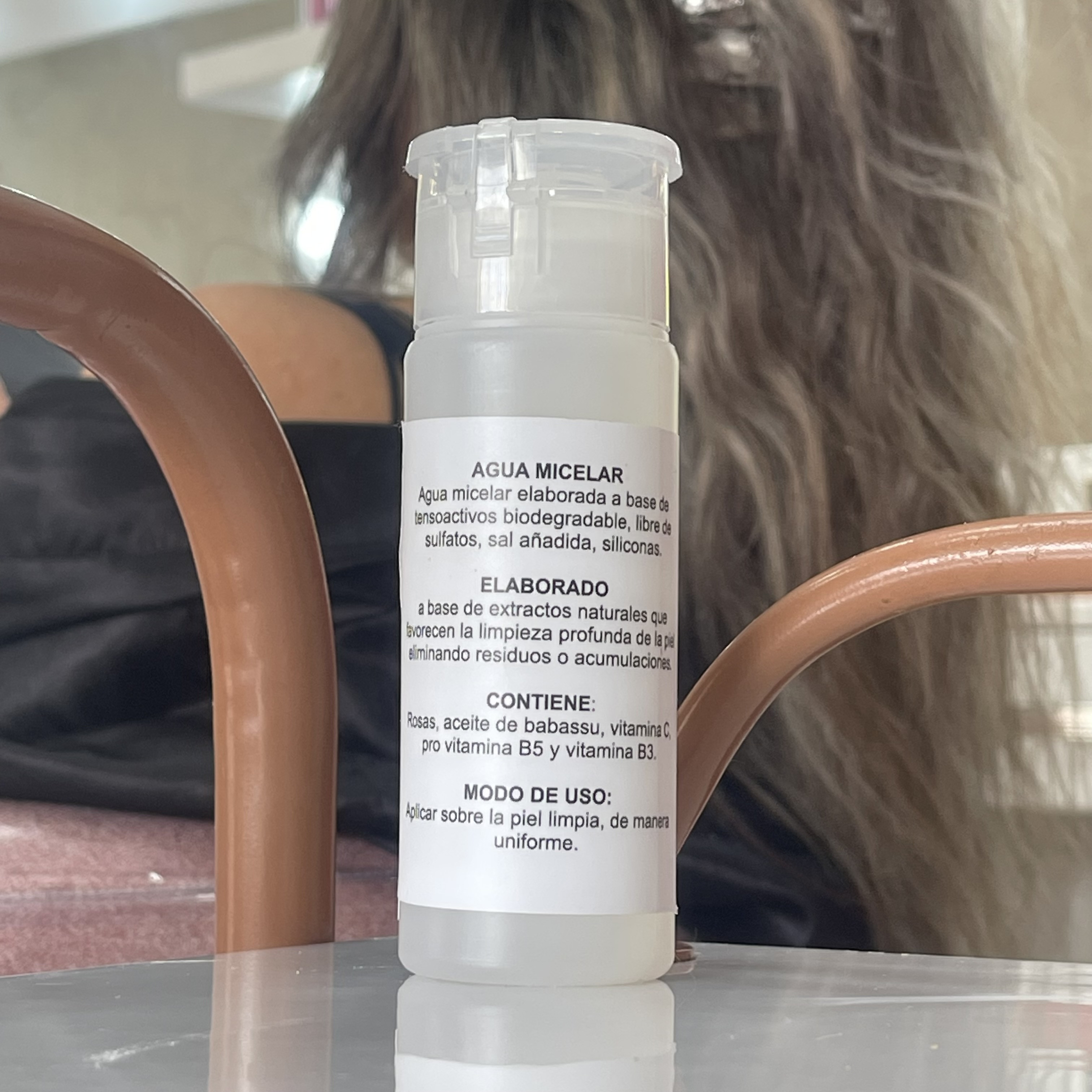 El agua micelar que ofrecemos está formulada con extractos naturales que favorecen la limpieza profunda de la piel, eliminando residuos y acumulaciones.