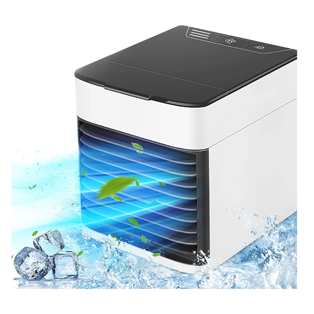 Puede utilizar el enfriador de aire evaporativo como el ventilador, humidificador, purificador para su gran tanque de agua de 750 ml. Puede llenarle agua o agua helada, lo que puede ayudarle a disfrutar de su verano refrescante. Interfaz de alimentación: USB DC 5V 2A.