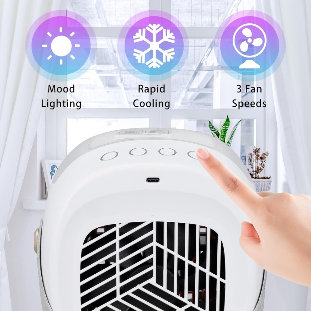 El enfriador de habitación es un «enfriador de aire personal» Ultra-liviano, fácil de transportar y tiene un diseño compacto. Es el dispositivo tipo aire acondicionado perfecto para cualquier lugar donde necesite una brisa fresca!