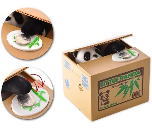 Bonito y adorable: coloca cualquier moneda de cualquier tamaño en la parte superior de la caja de dinero del panda y el adorable panda se levantará, coge la moneda y luego vuelve a la caja.