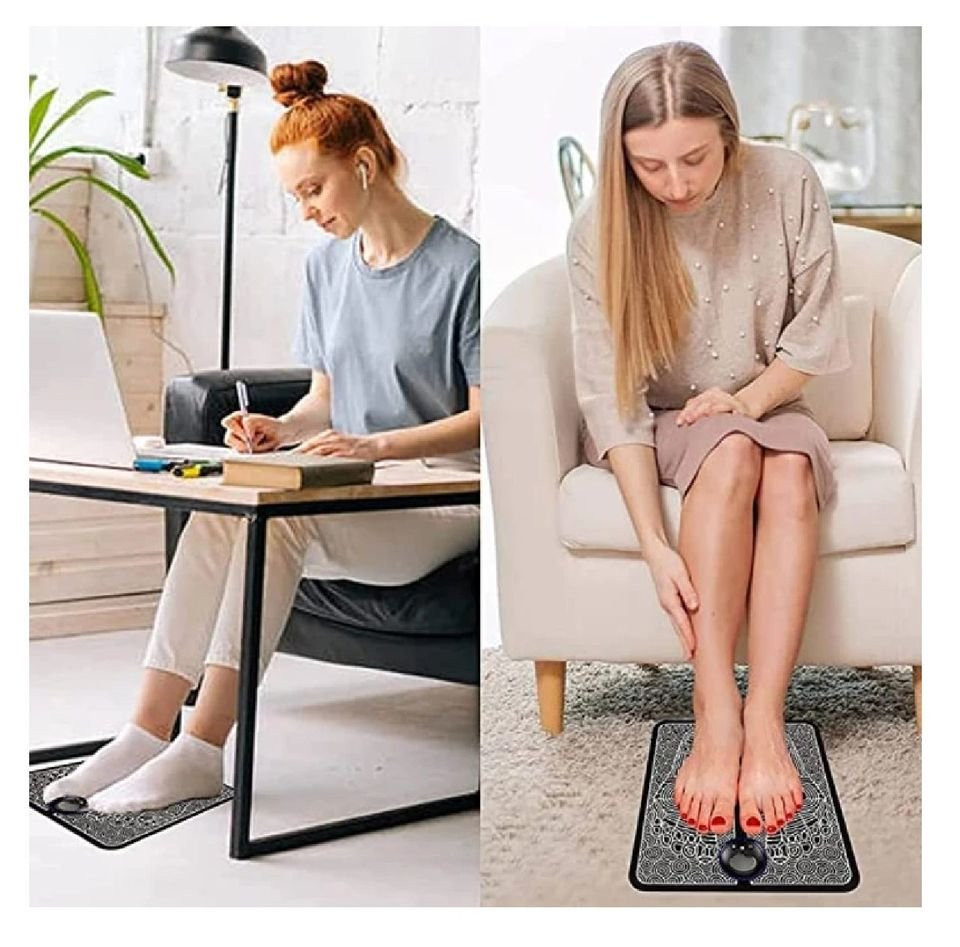 La batería de la almohadilla de masaje eléctrica es de 150mA, se puede usar entre 60 y 90 minutos. Después de usar el masajeador de pies, no necesita lavarlo con fuerza, solo límpielo con un paño húmedo. La esterilla de masaje de pies está hecha de material de esterilla de yoga suave, superficie de cuero, almohadilla de silicona duradera. Este masajeador de pies EMS, Carga USB, Protección Inteligente de apagado, seguro y cómodo de usar.