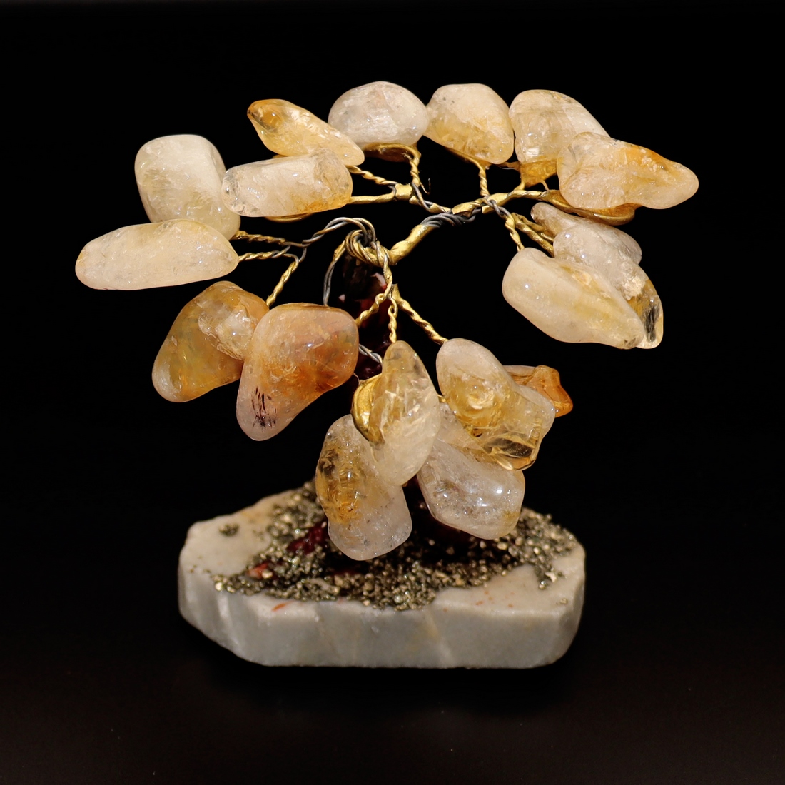 Los hermosos adornos para llenar nuestros espacios de buenas energías no deben faltar, en especial los árboles de piedras naturales los cuales marcan tendencia en la actualidad con diseños exclusivos y únicos. Este bello árbol contiene piedras citrino, la cual se conoce como cuarzo amarillo o cuarzo naranja, el citrino se ha utilizado como una piedra energética para atraer la alegría, la autoestima y la prosperidad.