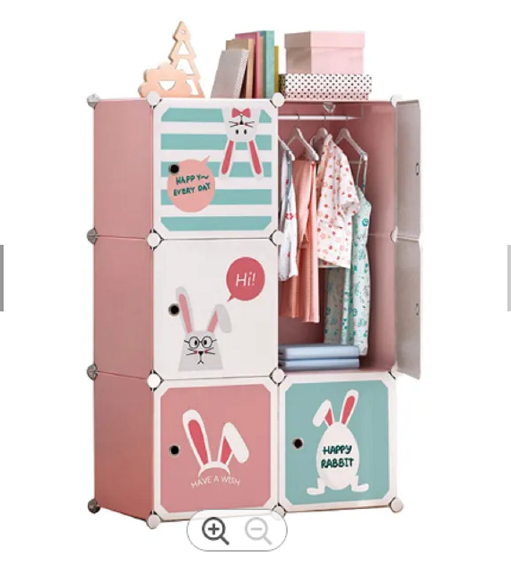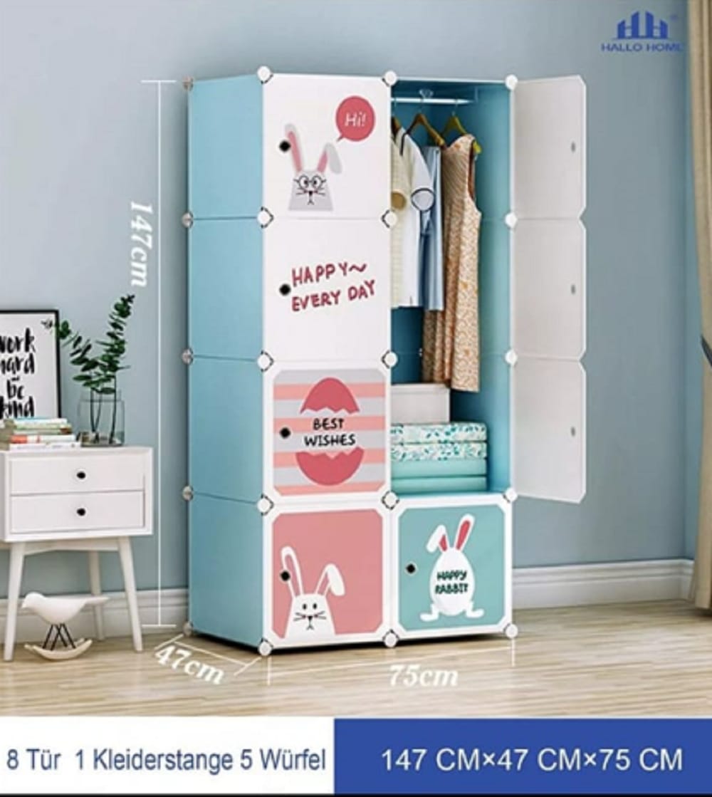 Armario Cómoda para niños Bebé lindo Armario portátil Armario del dormitorio Ropa Colgando Estante de almacenamiento Organizador de cubos Azul grande 6 cubos y 1 sección colgante.