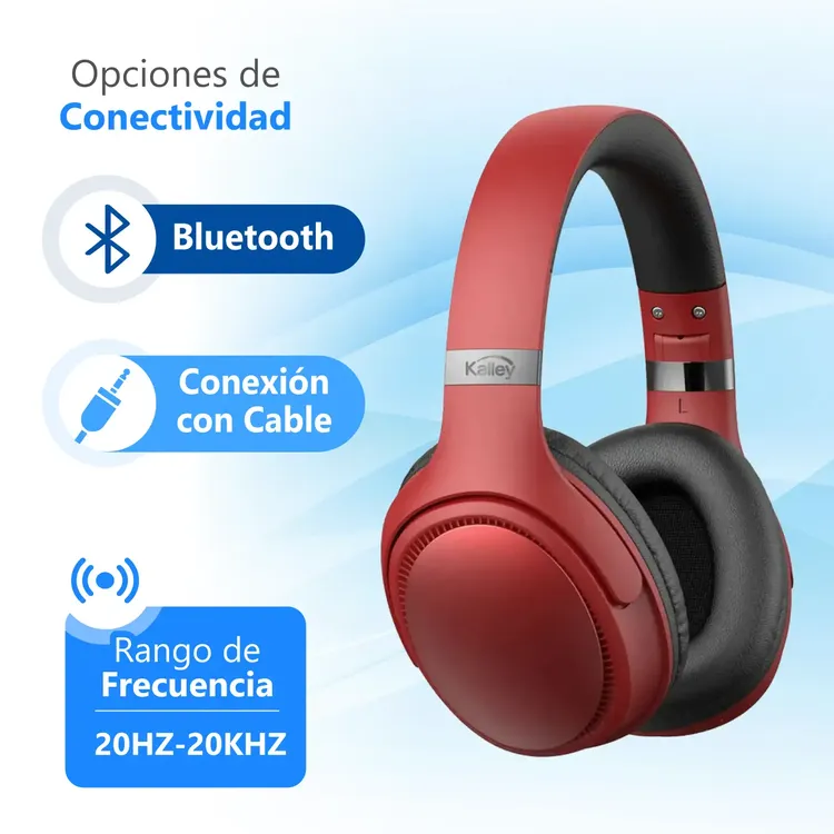 Audífonos de Diadema KALLEY Inalámbricos Bluetooth On Ear K-AR1 Rojo