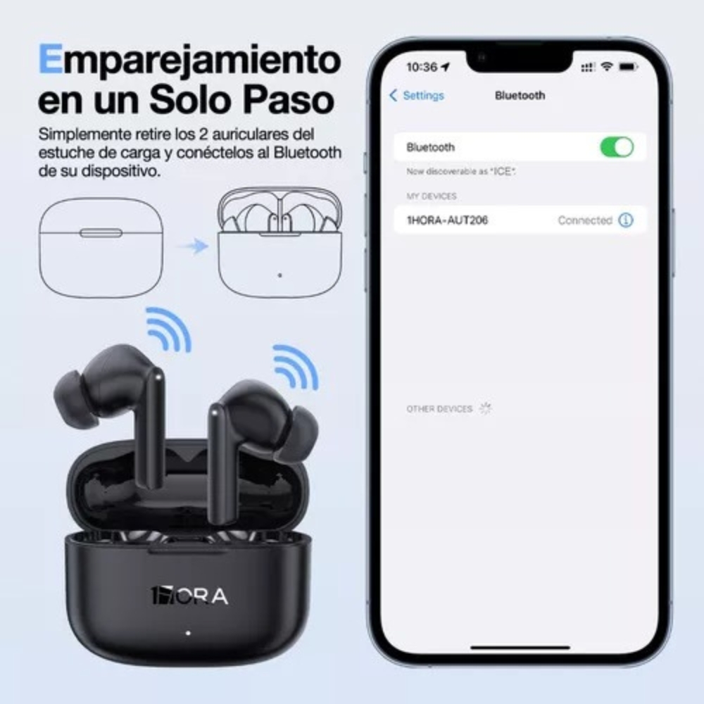 Audífonos Inalámbricos Bluetooth 1hora Aut206 Negro