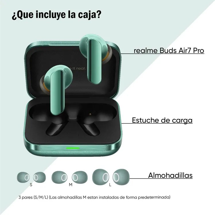Audifonos REALME Inalámbricos Bluetooth Deportivos Gaming In Ear TWS Air 7 Pro Cancelación de Ruido Verde