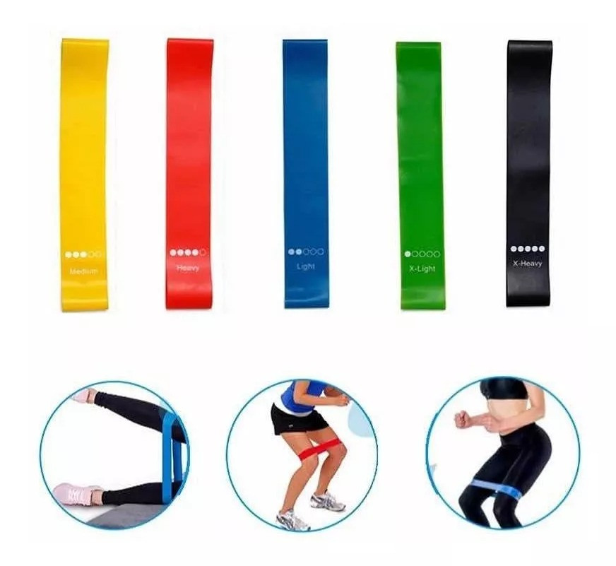 ¿Sin tiempo para ir al GYM? @Incorpora fácilmente a tus rutinas este grandioso Kit de Bandas elásticas cerradas ideal para el ejercicio en casa, rehabilitación de terapia física, ejercicios de yoga y pilates. @@Kit de Bandas elásticas cerradas x 5 @@* 1 banda cerrada verde de resistencia X- light @* 1 banda cerrada azul de resistencia light @* 1 banda cerrada Amarilla de resistencia Medium @* 1 banda cerrada Roja de resistencia Heavy @* 1 banda cerrada Negra de resistencia X- Pesado