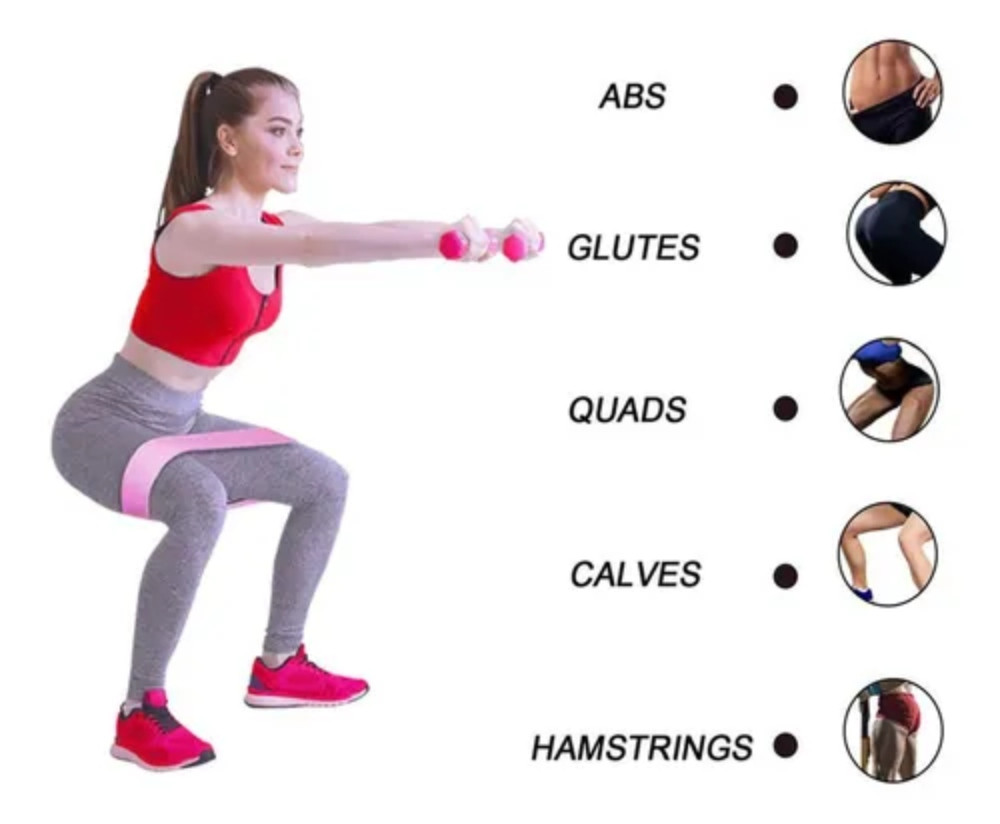 Contiene tres bandas: •Una Banda Fucsia: Medidas: 60 x 8 cm. Resistencia: 150 lbs. •Una Banda Verde: Medidas: 70 x 8 cm. Resistencia: 90 lbs. •Una Banda Azul: Medidas: 80 x 8 cm. Resistencia: 60 lbs.