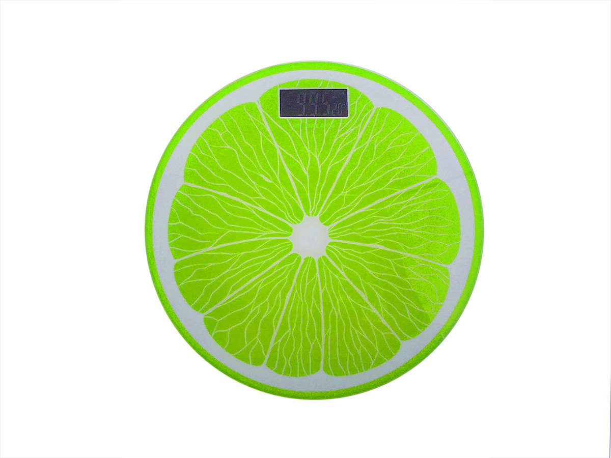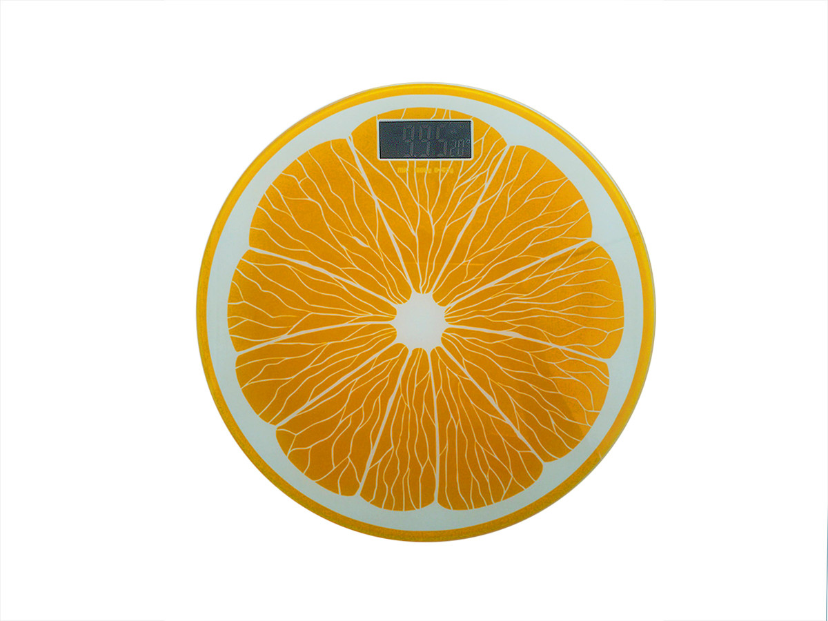 Vidrio templado, pantalla ancha con luz de fondo, diámetro de 30cm, peso máximo de 180 Kg y con encendido y apagado automático Y ANTI DESLIZANTE. sus medidas son : 30cm x 2.5 cm x 30 cm