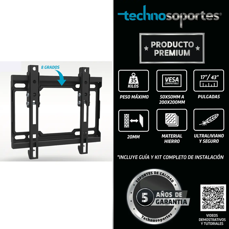 • Diseñado para sostener un televisor pantalla plana desde 17″ hasta 43″