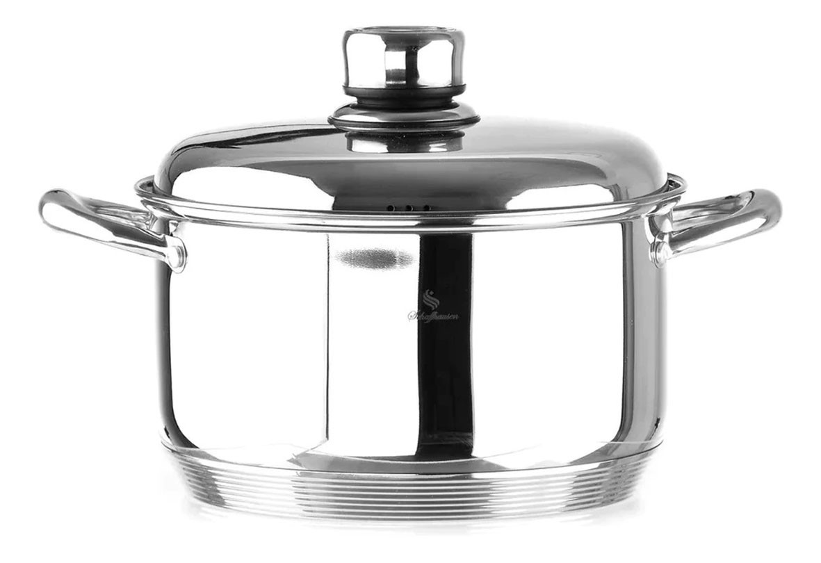 La batería de ollas cuenta con un termo difusor que distribuye de manera uniforme el calor para calentar y cocinar más rápido que las ollas convencionales, además de ser más saludable debido a que todas las piezas son 100% acero quirúrgico.