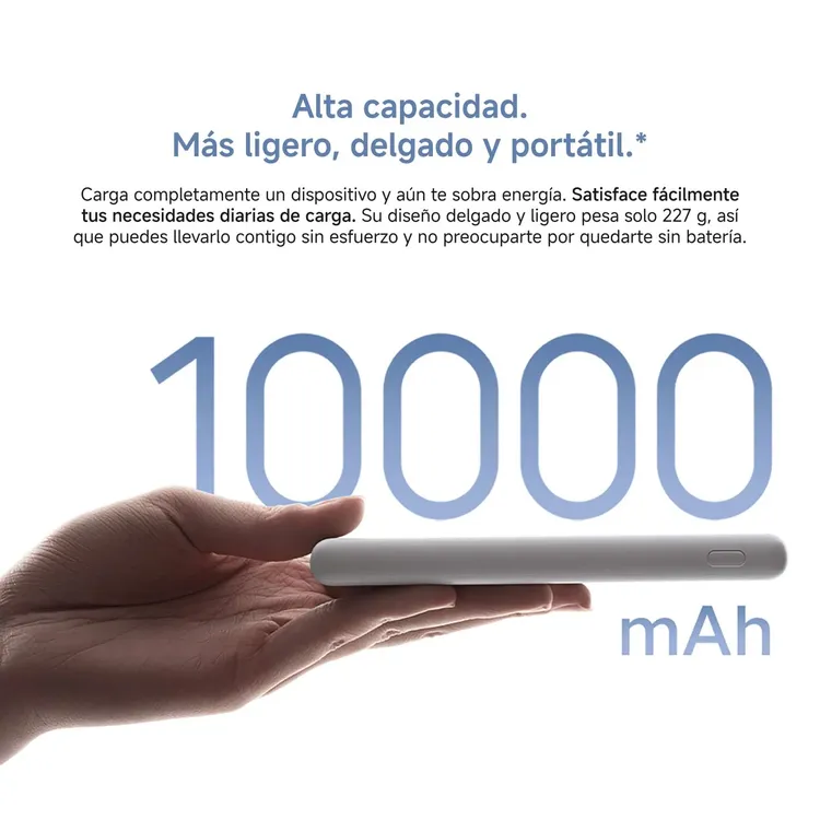 1 Power Bank 10000mAh y 22,5W Lite | 1 Cable de Carga USB| 1 Tarjeta de Garantía |1 Manual de Usuario