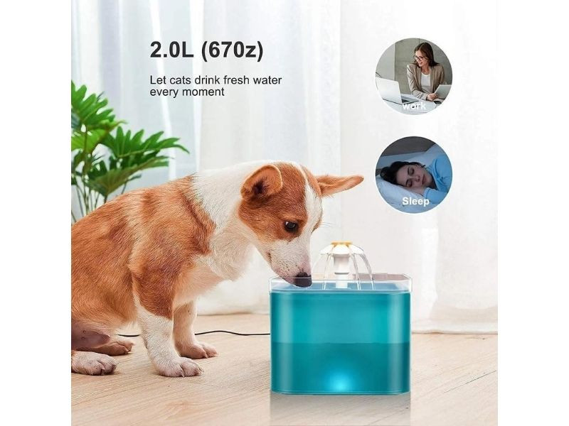 -Divertida y con gran capacidad de 2 litros: No hay necesidad de reponer agua con frecuencia y no solo puede satisfacer las necesidades de beber de gatos, perros, pájaros y otras mascotas de varios tamaños, sino también es un divertido juguete para mascotas. Deja que las mascotas beban agua fresca cada momento, el agua almacenada se puede utilizar durante dos semanas.