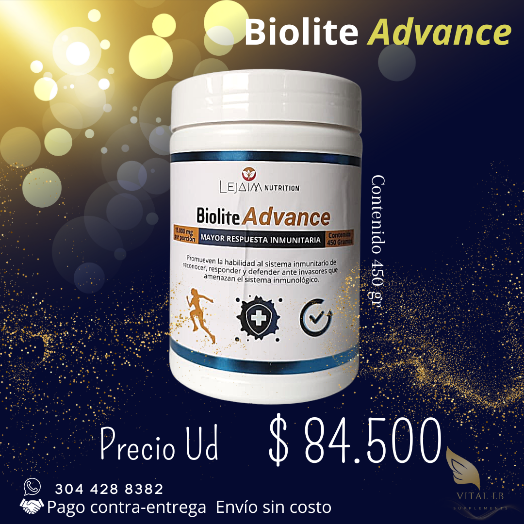 Biolite Advance, es un suplemeto alimenticio, ideal para proveer al organismo los factores de Inminudad capaces de responder ante cualquier agresión de Virus y bacterias.