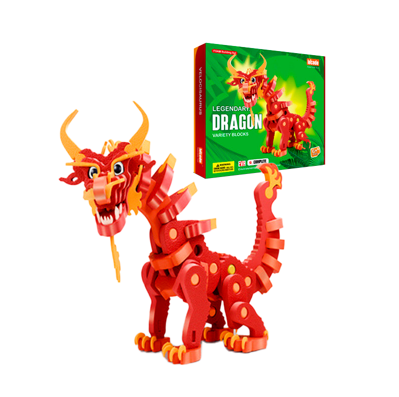 Rompecabezas 3D de dinosaurio para niños transfronterizo, Tiranosaurio Rex Triceratops, juguetes ensamblados de EVA para educación temprana para niños.Contiene 93 piezas para construir al dragón (fire dragon).