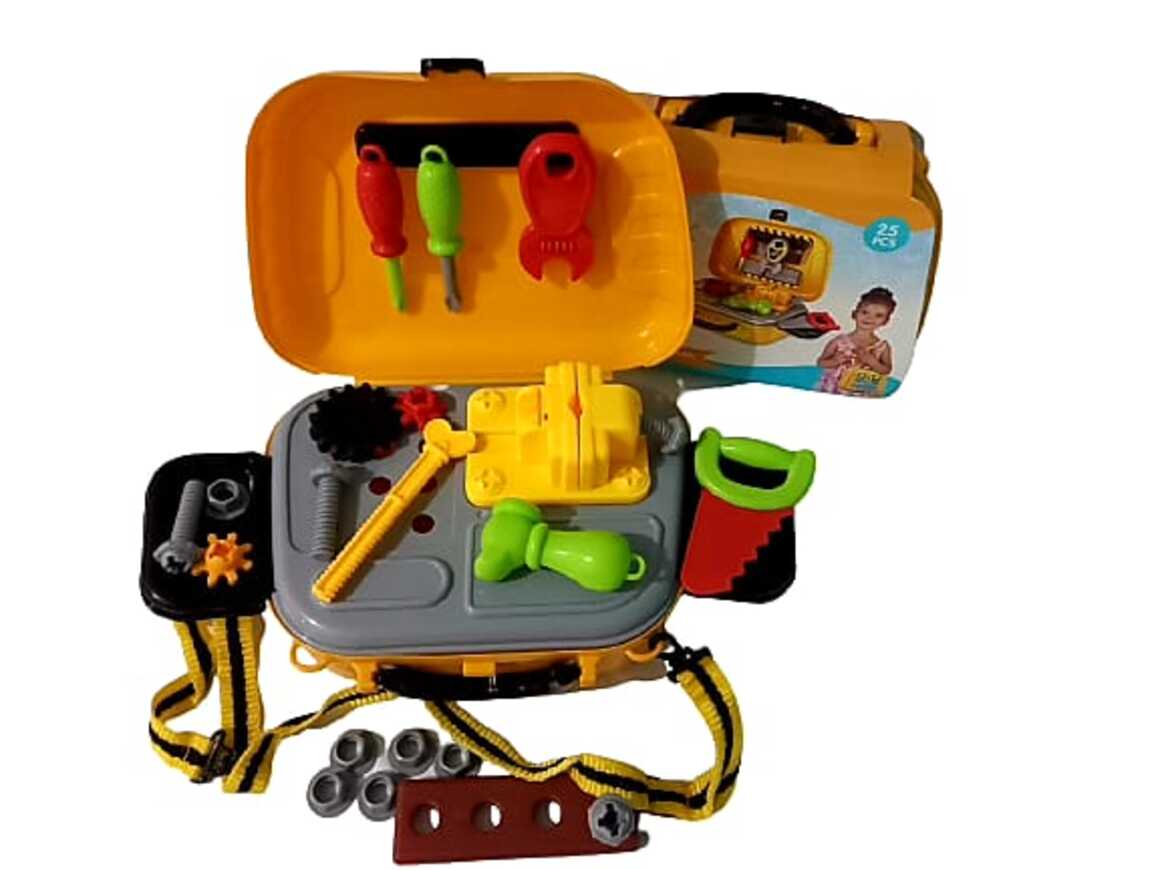 Este increíble bolso de herramientas simulación oficio de artesano con cuerda para colgar o manija para llevarlo a cualquier parte evitando su perdida. Tu niño podrá armar su propio taller de creación como más le guste estimulando sus capacidades cognitivas, conociendo e identificando cada pieza, jugando y divirtiéndose a la vez en compañía de familia o amigos. La lonchera es de peso ligero y tiene bordes redondeados para la comodidad y seguridad de tu pequeño. Trae varios accesorios permitiendo así la conexión con varios elementos de un taller tradicional siendo esto más amigable para tus hijos.