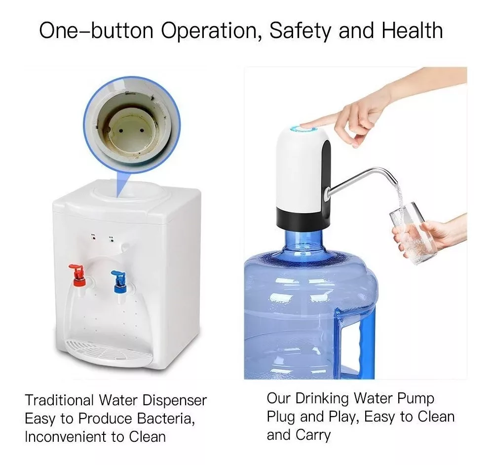 Batería recargable USB: batería recargable integrada de mAh. Se puede utilizar durante días o alrededor de 4-6 botellas de agua de 5 galones una vez cargado ¡! No es necesario cargar todos los días.