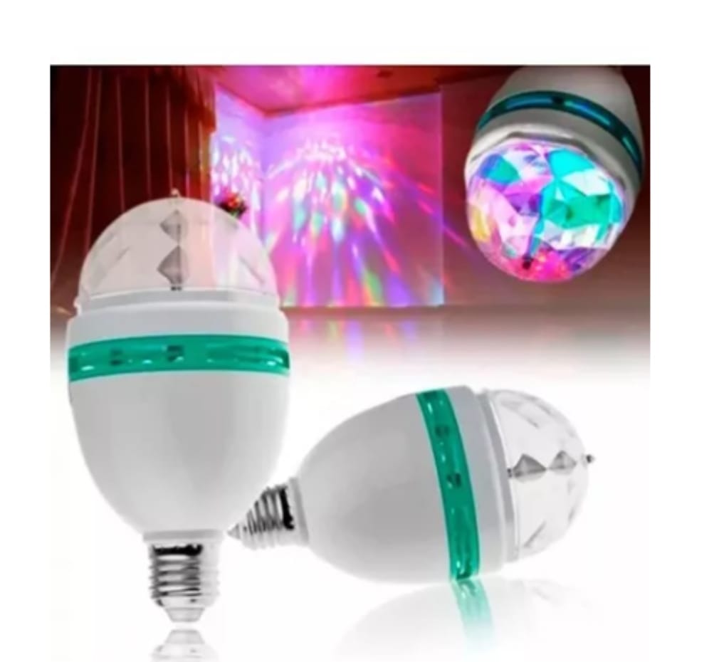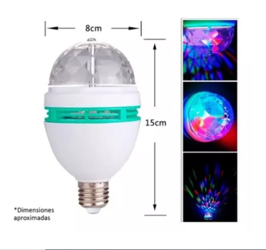 El Bombillo Giratorio LED, es el más atractivo para decorar la navidad, discotecas, bares, y para cualquier tipo de eventos, estos bombillos giratorios emiten una luz colorida que alegra los lugares donde esté ubicado, su instalación es fácil y las luces no dañan la visibilidad del lugar, las luces van girando de forma automática y lenta, sin llegar a marear.