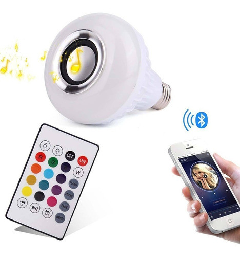 Bombillo led parlante bluetooth, con este dispositivo puedes escuchar música, apagar o encender la luz con el control remoto y cambiar los diversos colores de luz