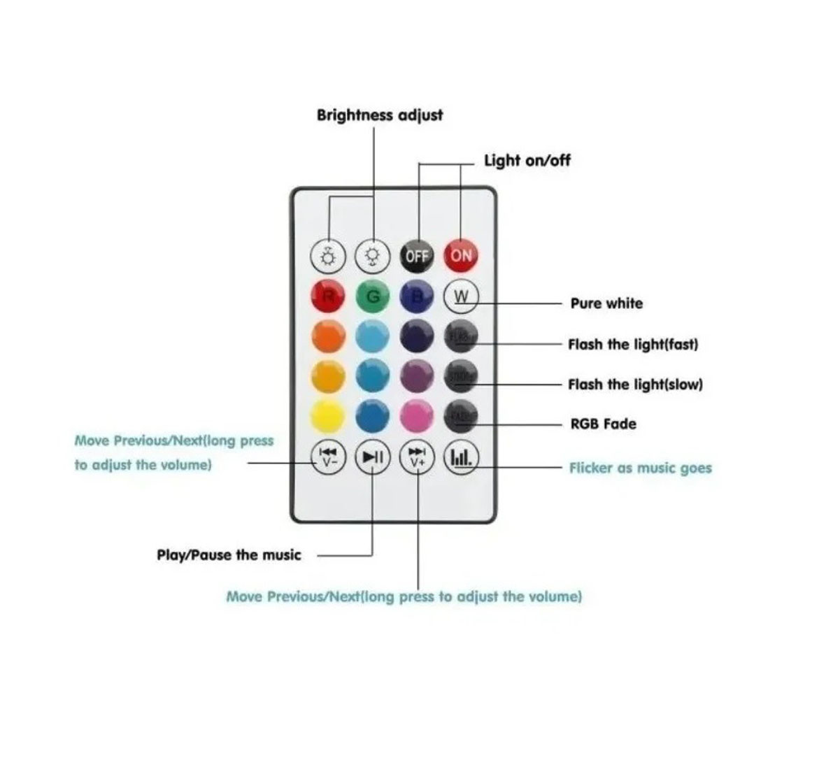 – El color de la luz: RGB 16 color con el mando a distancia.