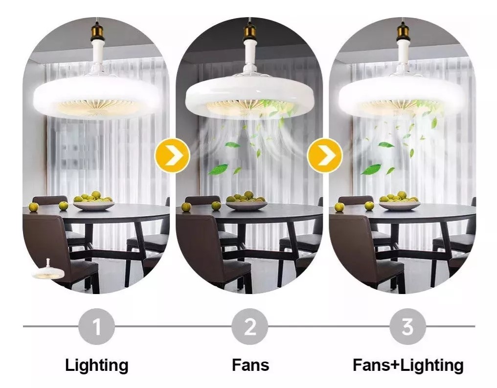 Diseño 2 en 1: el techo LED no solo es una luz LED luz E27, sino que también se usa como ventilador, con voltaje CA 86V-265V, función sincronización, con tabletas aromaterapia. @tiene tres engranajes ajustables, el montaje en techo empotrado se pueajustar como desee y pues satisfacer fácilmente diferentes necesidades, lo cual es práctico. @Totalmente silencioso: el techo tiene un motor silencioso de cobre incorporado, que se mueve suave y silenciosamente, lo que puede mejorar tu descanso y la calidad del sueño de los niños y sus familias.