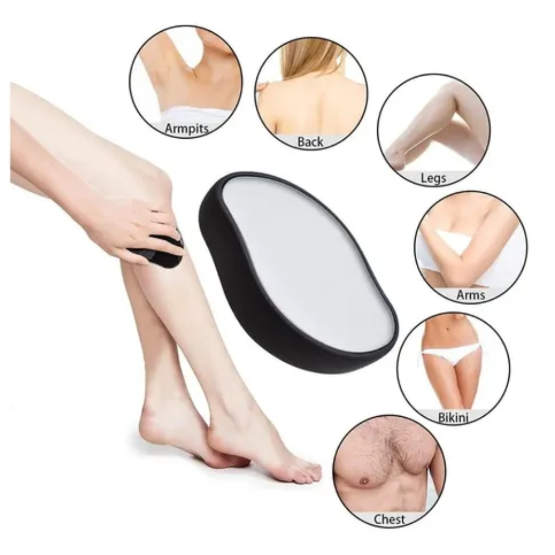 Dile adiós a los cortes de navaja, la depilación con cera dolorosa o los láseres costosos, ¡el borrador mágico de cristal remueve los vellos, exfolia la piel muerta y mejora el tono de tu piel. ¡Simplemente frótalo sobre tu piel para un cuerpo sin vello!