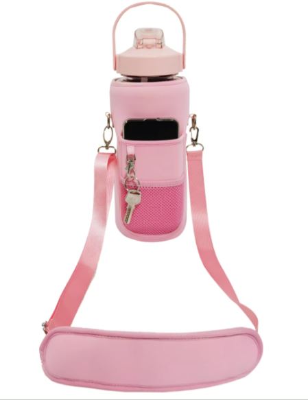 MANGA DE ALMACENAMIENTO AISLADA MULTIFUCTION PARA BOTELLA DE AGUA: Nuestra jarra de agua de 2 litros con pajita está diseñada con una manga de neopreno de 5mm de alta calidad para proteger la botella de agua de golpes leves, pero mantén el agua fría por más tiempo y absorbe el sudor desordenado para evitar que gotee sobre la mesa o el asiento. 2 bolsillos en la funda de la jarra de agua deportiva pueden ser Teléfono de almacenamiento, tarjeta, airpods, llave, etc. Fácil de llevar al gimnasio, deporte. Liberará la mano con una cómoda correa acolchada para el hombro y la ajustará de 25 «a 50» para garantizar un ajuste perfecto.