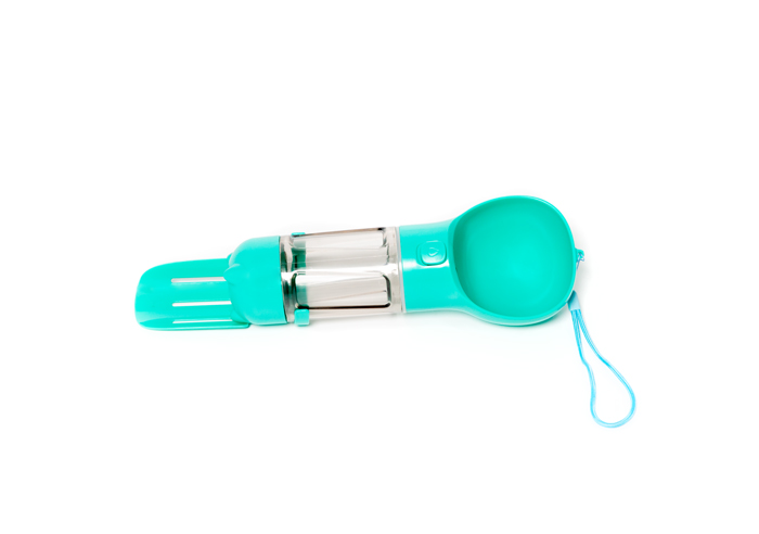 Botella de agua con combinación 3 en 1: la botella de agua para perro es una botella de diseño mejorado. Se compone de taza de agua, taza de almacenamiento de alimentos y una pala. Además, viene con una práctica bolsa de regalo. Ayuda a tu perro a beber agua fácilmente y puedes alimentar alimentos en cualquier momento y en cualquier lugar. Puedes limpiar el excremento del perro con la pala y ponerlo en la bolsa de comodidad adjunta.