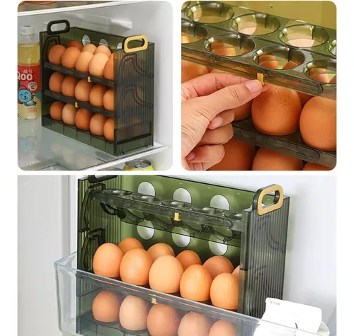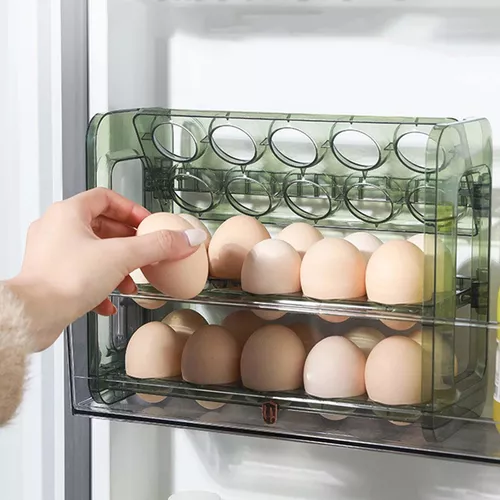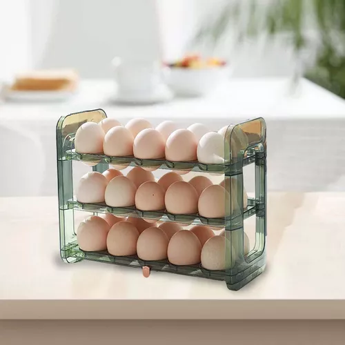 Contenedor de bandeja de huevos de nevera abatible de 3 capas, contenedor de almacenamiento de huevos frescos para encimera.