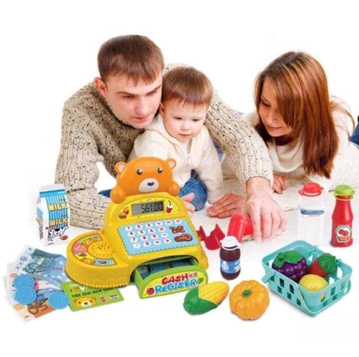 juguete educativo para jugar de imitación en supermercado, caja registradora electrónica de plástico. juega mientras aprendes.