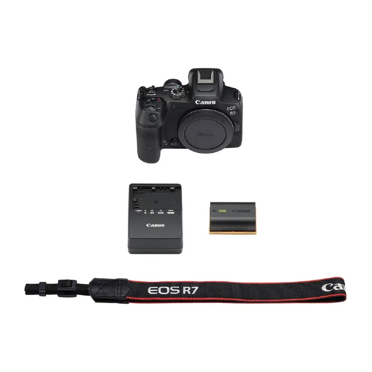 Cuerpo de la EOS R7<br>Correa ER-EOSR7<br>Cargador de batería LC-E6<br>Batería LP-E6NH<br>Cubierta de la zapata