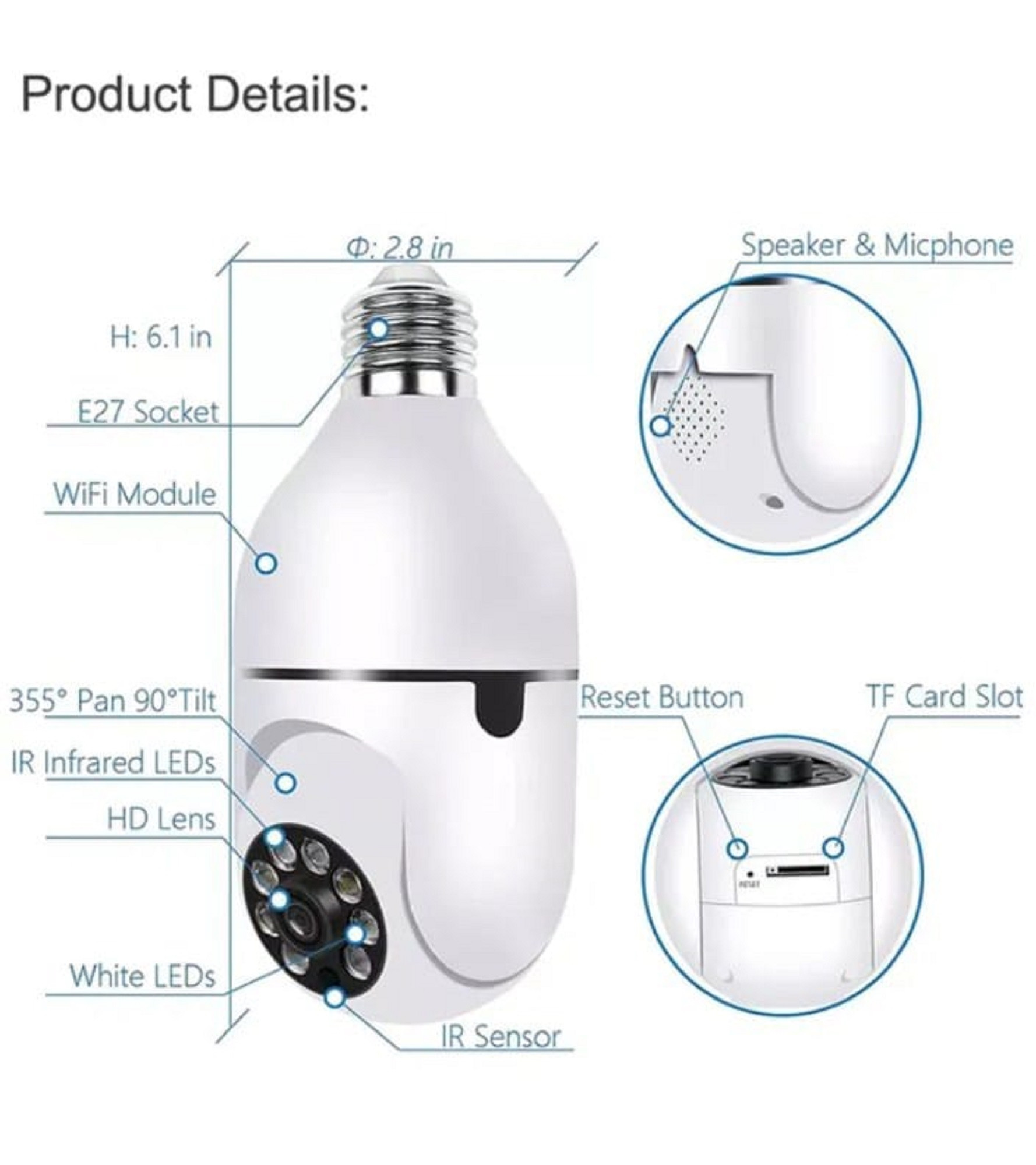 · Tiene el tamaño y la forma de una bombilla LED normal y discreta.