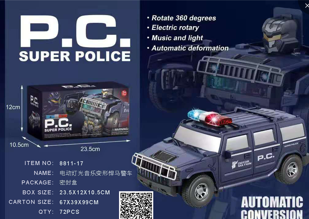 Camioneta manual a control remoto estilo policial su material es en plastico tamaño de 23cm de largo edad recomendada es de 3años en adelante peso aproximado de 30/35kgs