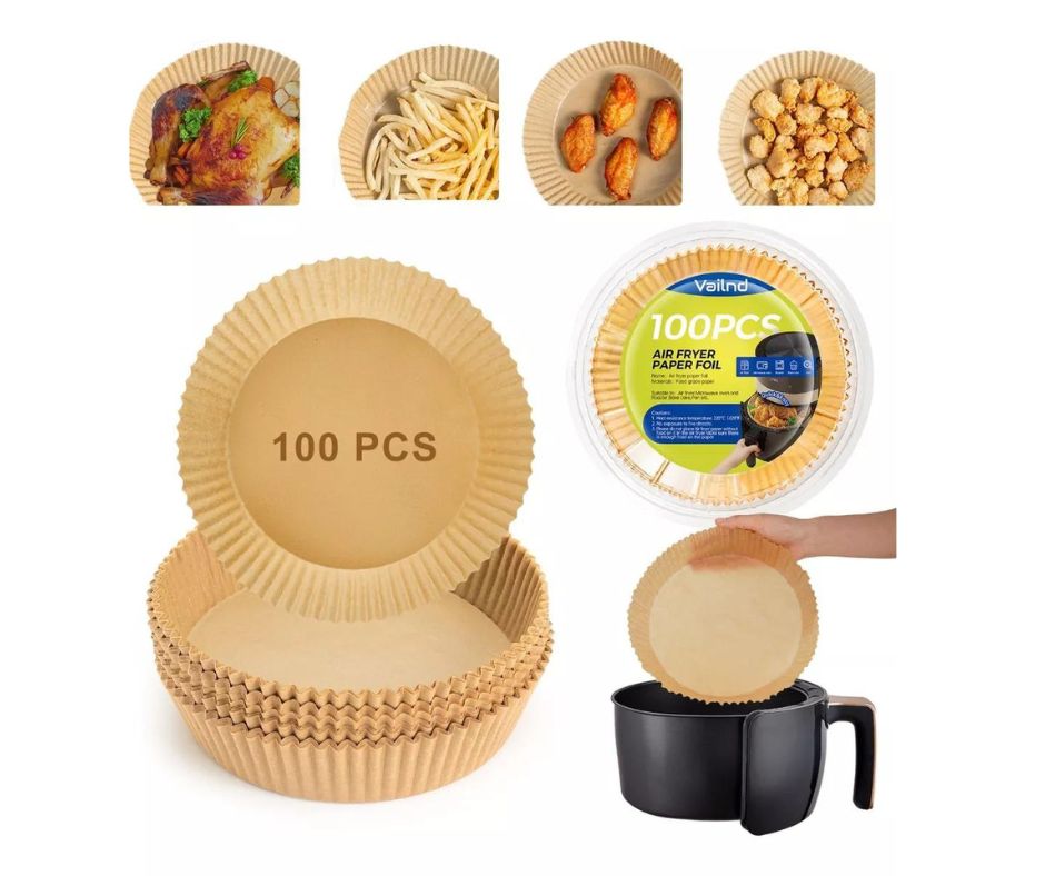 Forros de papel de pergamino desechables para freidora de aire, forros de frutas de aire, papel antiadherente para cocinar alimentos, papel de hornear, a prueba de agua, para freidora de aire, microondas, horno, papel de pergamino (100 unidades)