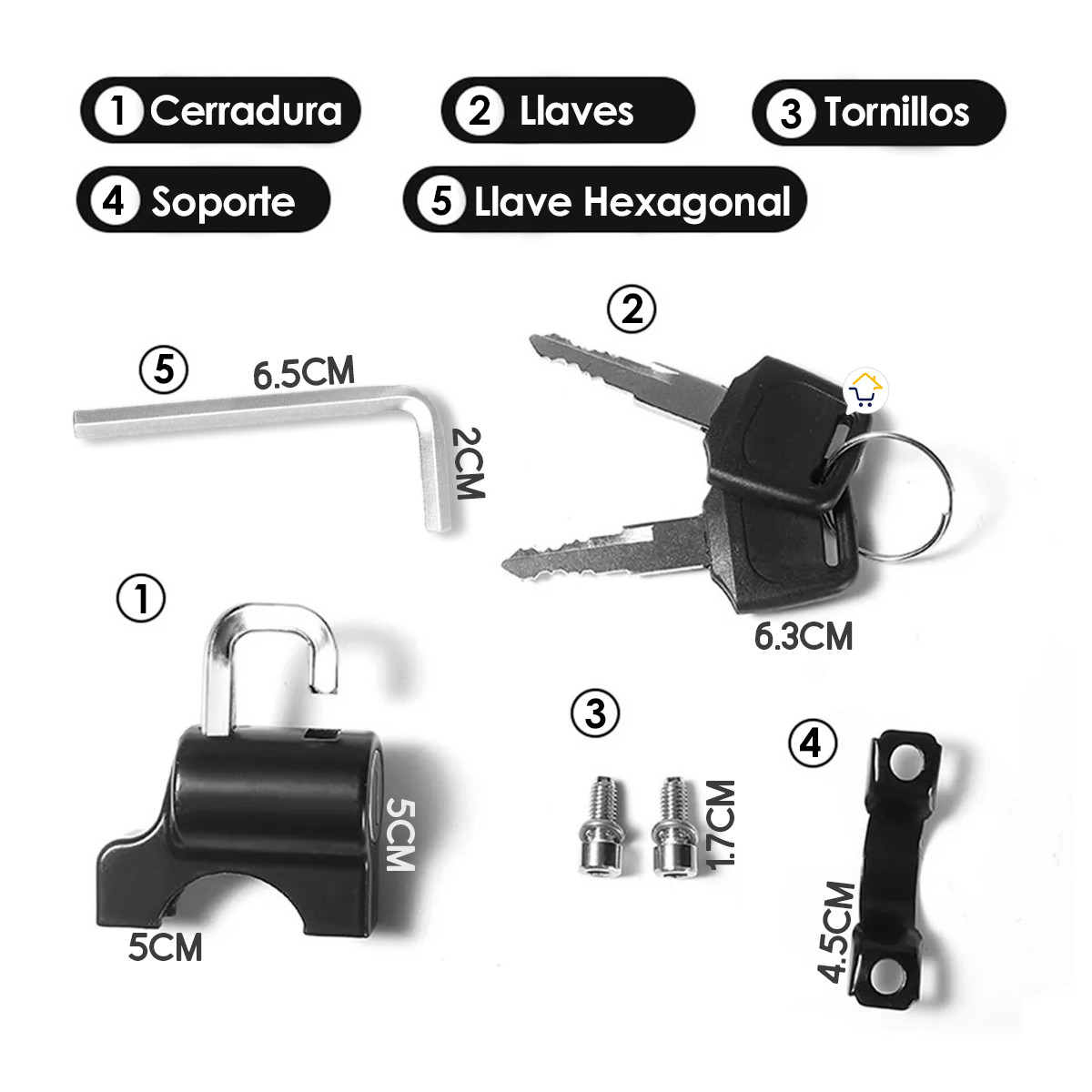 - Diseñado para bloquear su casco en la motocicleta cuando necesite salir por un tiempo.