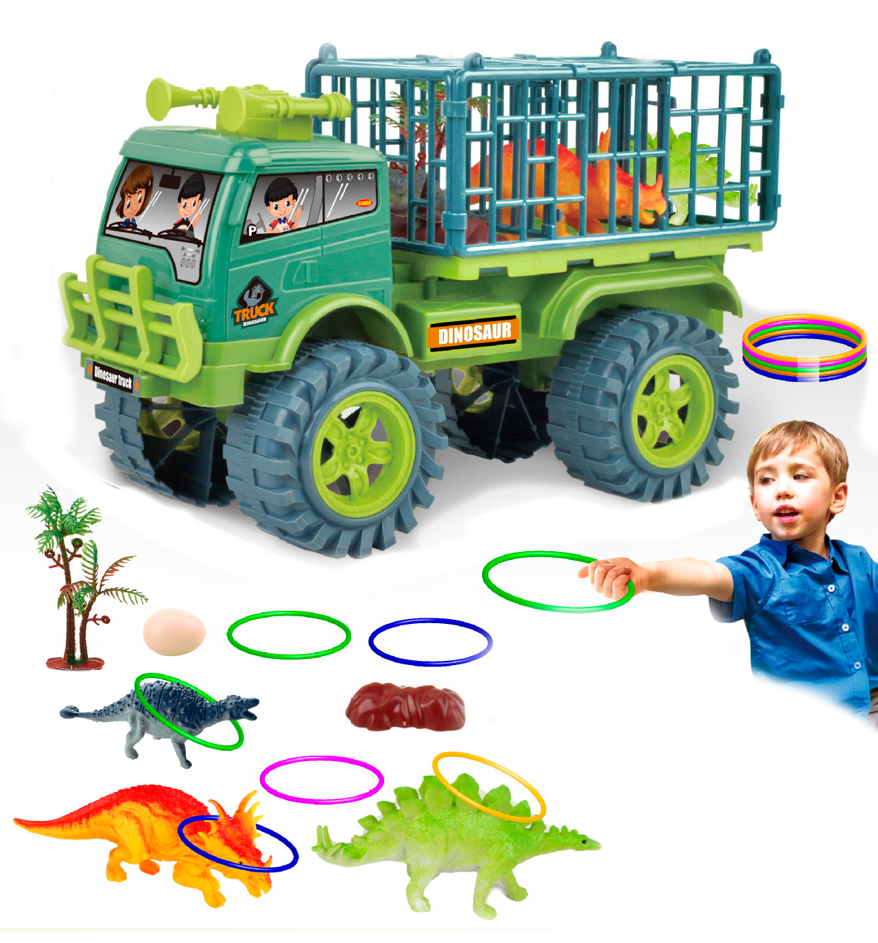 Vehículo de ingeniería de transporte de dinosaurios deslizante, anillo de dibujos animados interactivo para padres e hijos, bolsa de juego