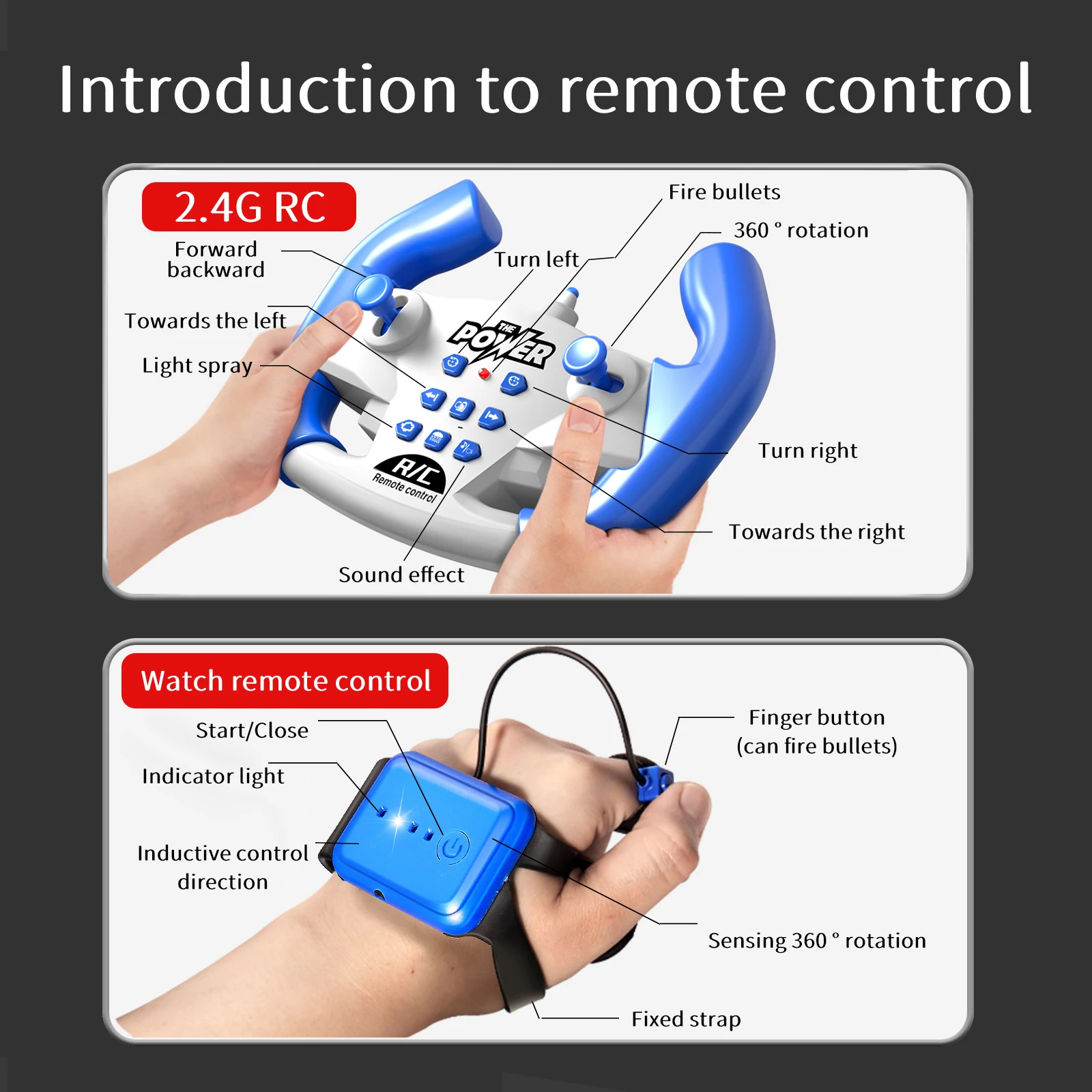 Métodos de control remoto dual: control remoto de 2.4 G y control remoto de sensor de gestos (Manilla), muy sensible, puede ser detectado hasta 10 metros por el sensor de movimiento, aportando una excelente experiencia de funcionamiento, a los adultos y a los niños les va encantar jugar.