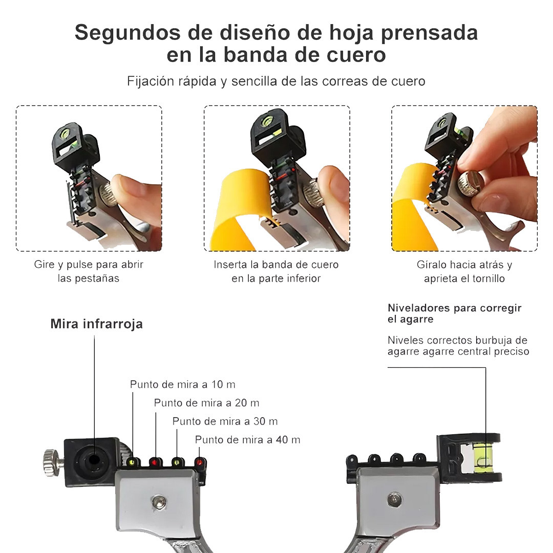- Ahorro de tiempo y esfuerzo: La cauchera con láser agiliza el proceso de apuntado y alineación, lo que te permite ahorrar tiempo y esfuerzo en tus tareas.