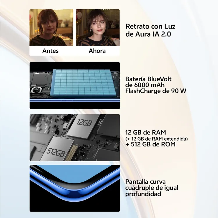 [5=Capacidad de la Bateria=6000 mAh, 3=Resolucion Camara Posterior 1=50 Mpx, 4=Tamaño Pantalla=6.77 Pulgadas, 1=Memoria Interna=512 GB, 2=Memoria RAM=12 GB]