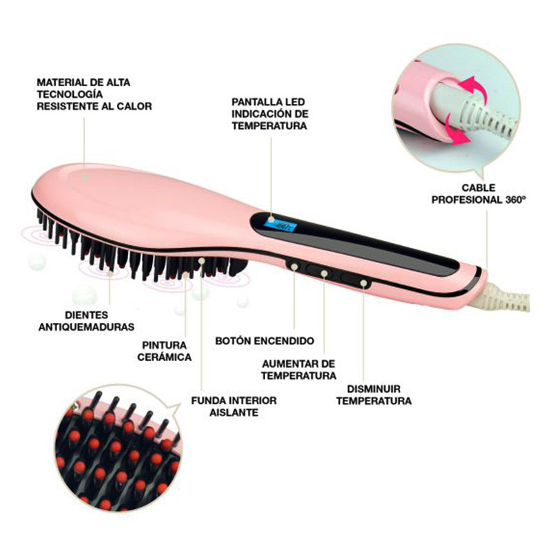 Este innovador cepillo se ha convertido en uno de los productos para peluquerías más demandados. Se trata de un producto dos en uno. Por una parte cepilla el cabello a la vez que lo alisa gracias a su sistema que impide que el cabello se seque y encrespe.