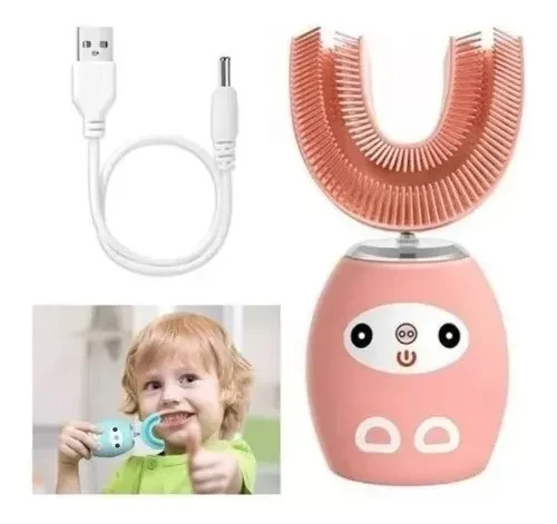 Edad adecuada: 2-7 años ● Tiempo de carga: aproximadamente 120 minutos ● Tensión nominal: 3,7 V ● Limpieza ultrasónica de 360 grados: este cepillo de dientes en forma de U está especialmente diseñado para vibraciones de baja eficiencia. ● Portabilidad: este producto es de tamaño pequeño y peso ligero, lo cual es muy cómodo de llevar.