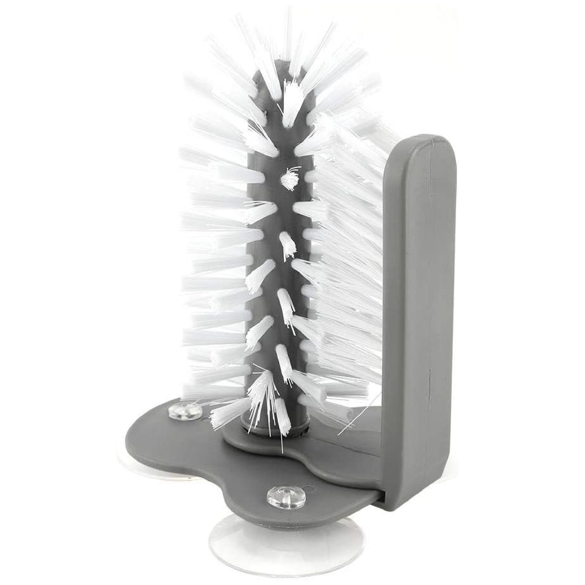Ventosas: hay tres ventosas grandes en la parte inferior del cepillo, la base de agarre de succión se fija firmemente a la mesa de pared o se fija a la parte inferior del fregadero, simplemente desliza la cristalería entre los dos juegos de cerdas, conveniente de usar y limpiar.
