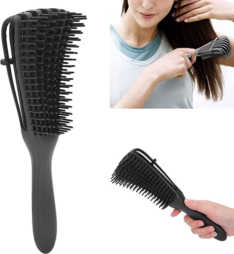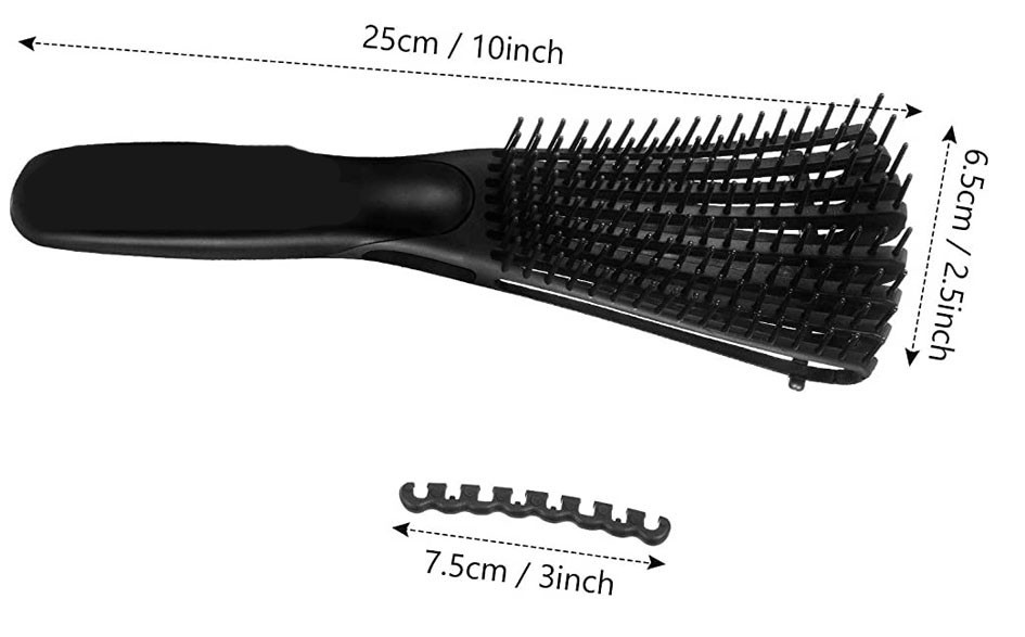 Este cepillo es Ideal para desenredar todo tipo de cabello (Pelo rizado, grueso, ondulado) lo puedes usar con el cabello húmedo y seco, te da una sensación de un agradable masaje en el cuero cabelludo. Cuenta con cerdas flexibles separadas que desenredan el pelo fácilmente sin tirar ni dañar el cabello. Es La solución más fácil de poner fin a tus peinados sin enredos y darte un cabello sedoso y brillante.