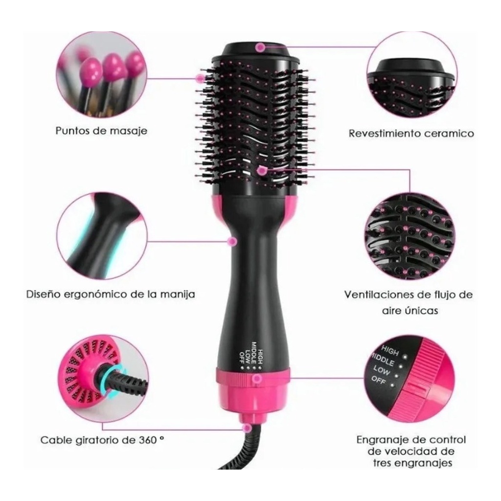 * Cepillo voluminizador secador de pelo de un solo paso * El mismo cepillo diseñado con pasador de nailon y andamp; cerdas con mechones para desenredar, volumen y control mejorados. diseño único de cepillo ovalado para alisar el cabello, mientras que los bordes redondos crean volumen * 1100 vatios de potencia proporcional el calor justo. a diferencia de los secadores de cabello convencionales, este voluminizador se puede colocar más cerca del cuero cabelludo para levantarlo. 3 configuraciones de calor / velocidad para flexibilidad de peinado * Construido con un generador de iones genuino para promover un secado rápido y estilos llenos de brillo y cabello de aspecto saludable.