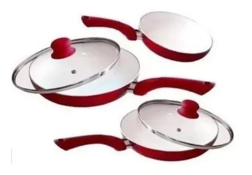 Base diseñada para una difusión optima de calor apto para todo tipo de cocinas sartenes set de 5 piezas 20,24 y 28 cms