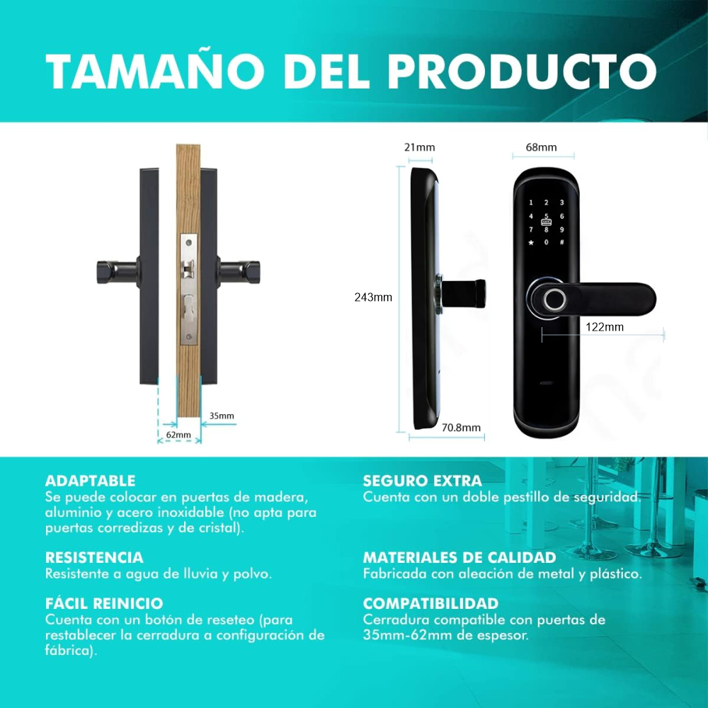 ¿Te preocupa la seguridad? No te preocupes, ¡estamos un paso adelante! Nuestro sistema de encriptación avanzado garantiza la protección de tus datos y la seguridad de tu hogar en todo momento. Además, la cerradura cuenta con notificaciones en tiempo real a través de la aplicación para que estés al tanto de cualquier actividad en tu puerta.