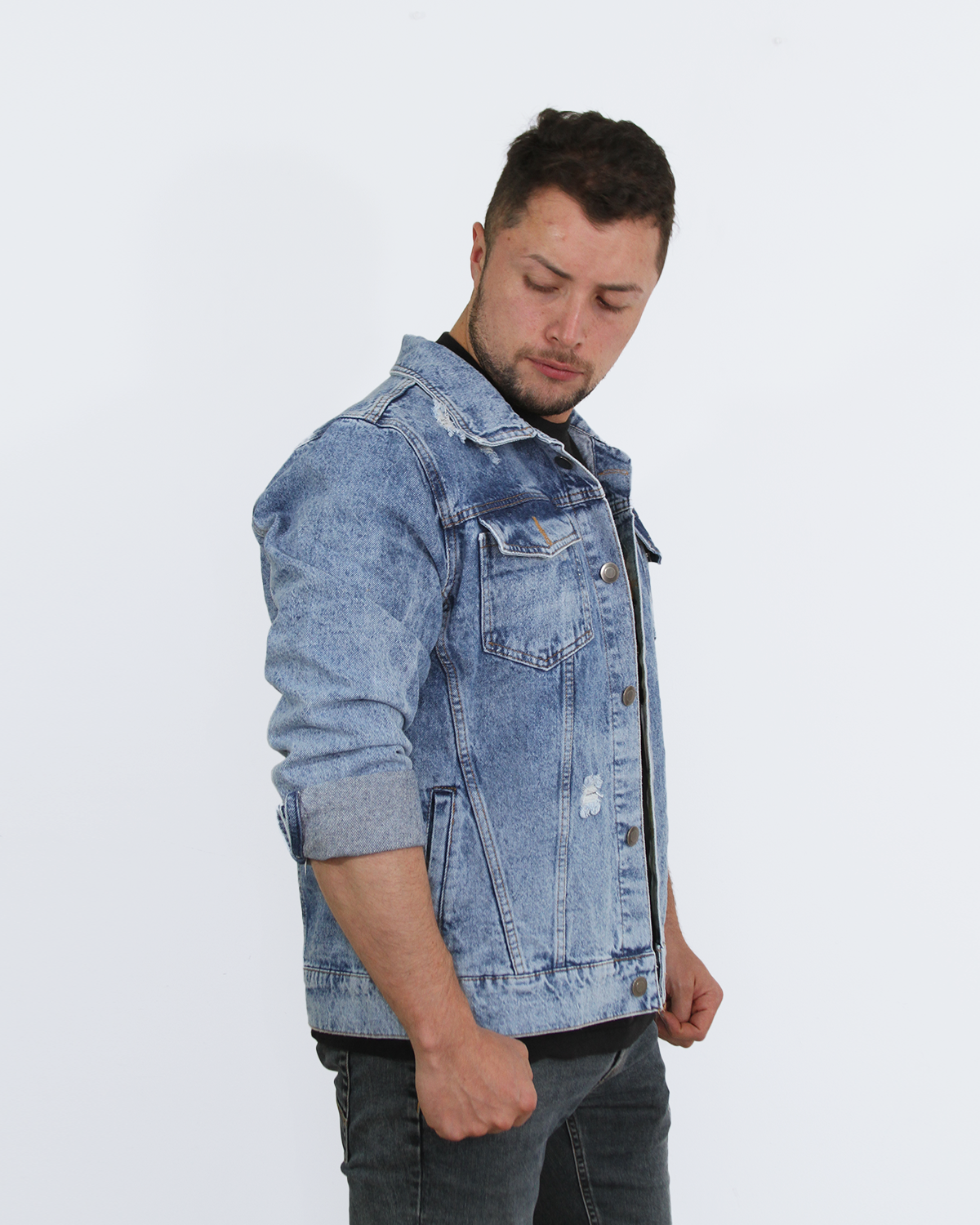 Chaqueta de hombre en jean rigido, es la clasica chaqueta de jean impecable para toda ocación. Cuello camisero, perilla completa con botones metálicos, bolsillos de tapa en el frente superior y bolsillos de ribete en los costados, ideal para personalizar ponle parches bordados o pines de acuerdo con tu personalidad.