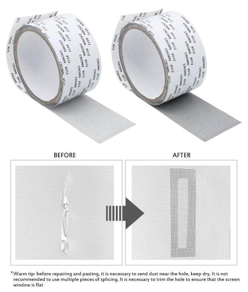 - Repare los agujeros y grietas en las pantallas de ventanas, puertas de pantalla, redes de tienda, pantallas de piscina, pantallas de RV, etc.