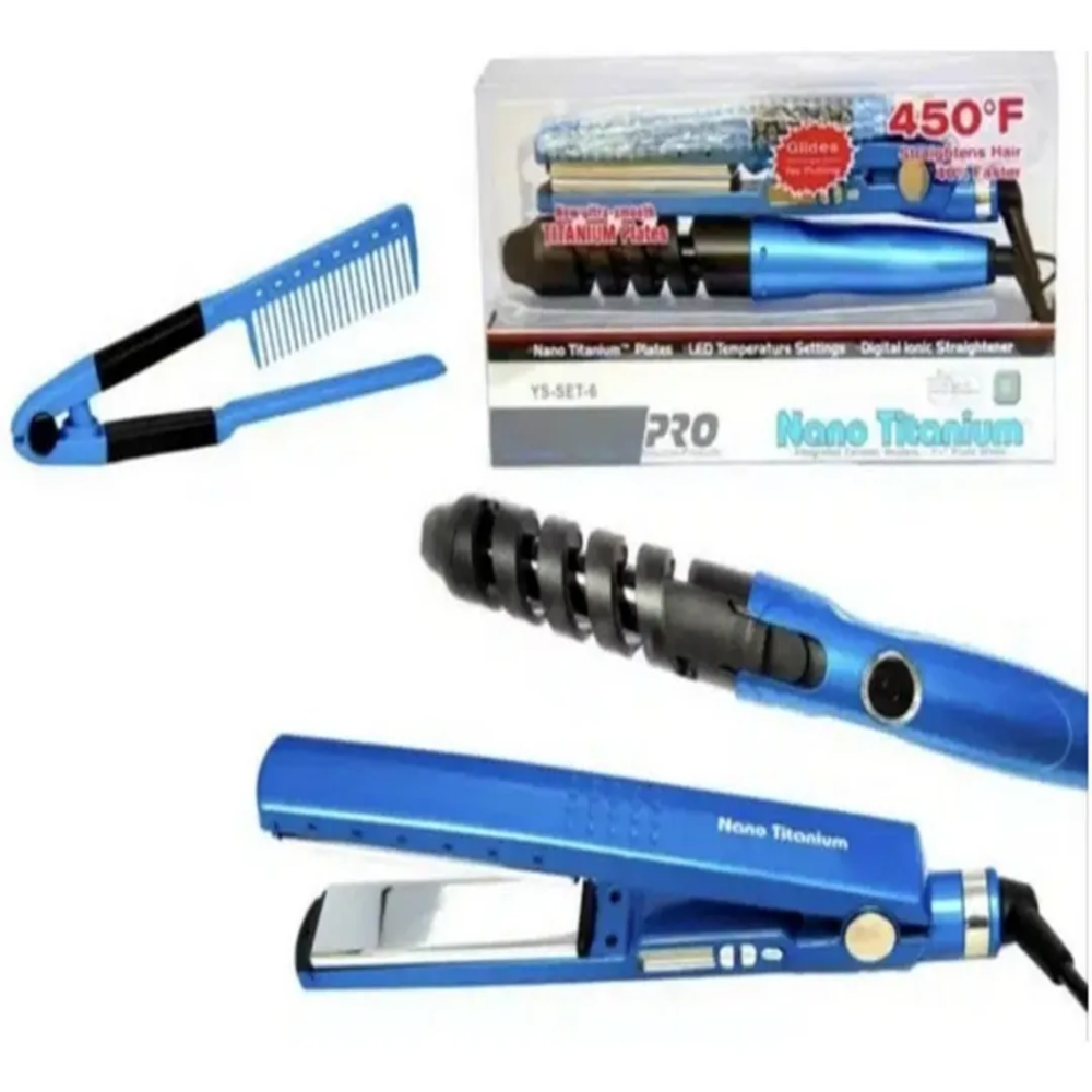 Con la Plancha En Titanio Digital , 1 ¼ ahora podrás tener un cabello liso y brillante en muy poco tiempo, gracias a la tecnología de Placas en Titanio que esta magnífica plancha integra. Su temperatura es graduable y alcanza hasta 450° F para que tengas los resultados deseados sin causar ningún tipo de daño a tu cabello. TEMPERATURA DIGITAL CON PANTALLA LED: Con 5 niveles de temperatura para que puedan ser regulados de acuerdo a tu cabello.