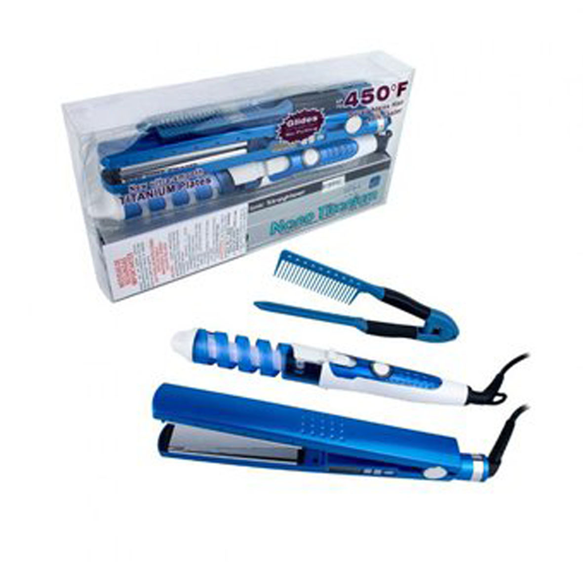 Combo Plancha Nano Titanium Peine Rizador Secador Lm 5000 W